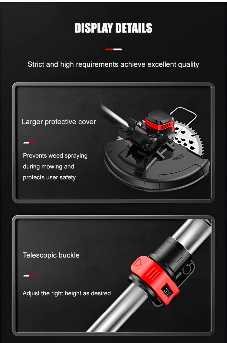 Equipped with a powerful 1880W pure copper brushless motor. It can clear 10 acres of weeds in one morning.
