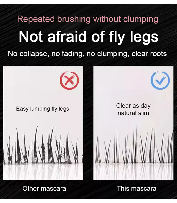 With a spiral long-tooth comb, each lash is wrapped 360° 💫, giving you perfect lashes in just 10 seconds 🌟. After use, your lashes won't smudge or run for 24 hours, even if you sweat or cry 🌟. The curl of the lashes instantly extends more than twice ✨
